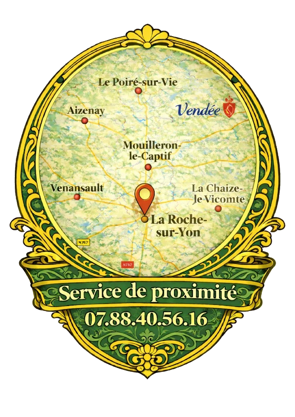 La Brigade du Chiffon intervient dans un rayon de 30 km autour de La Roche sur yon afin de pouvoir répondre à vos besoins rapidement et vous assurer des prestations suivies au plus proche de chez vous.